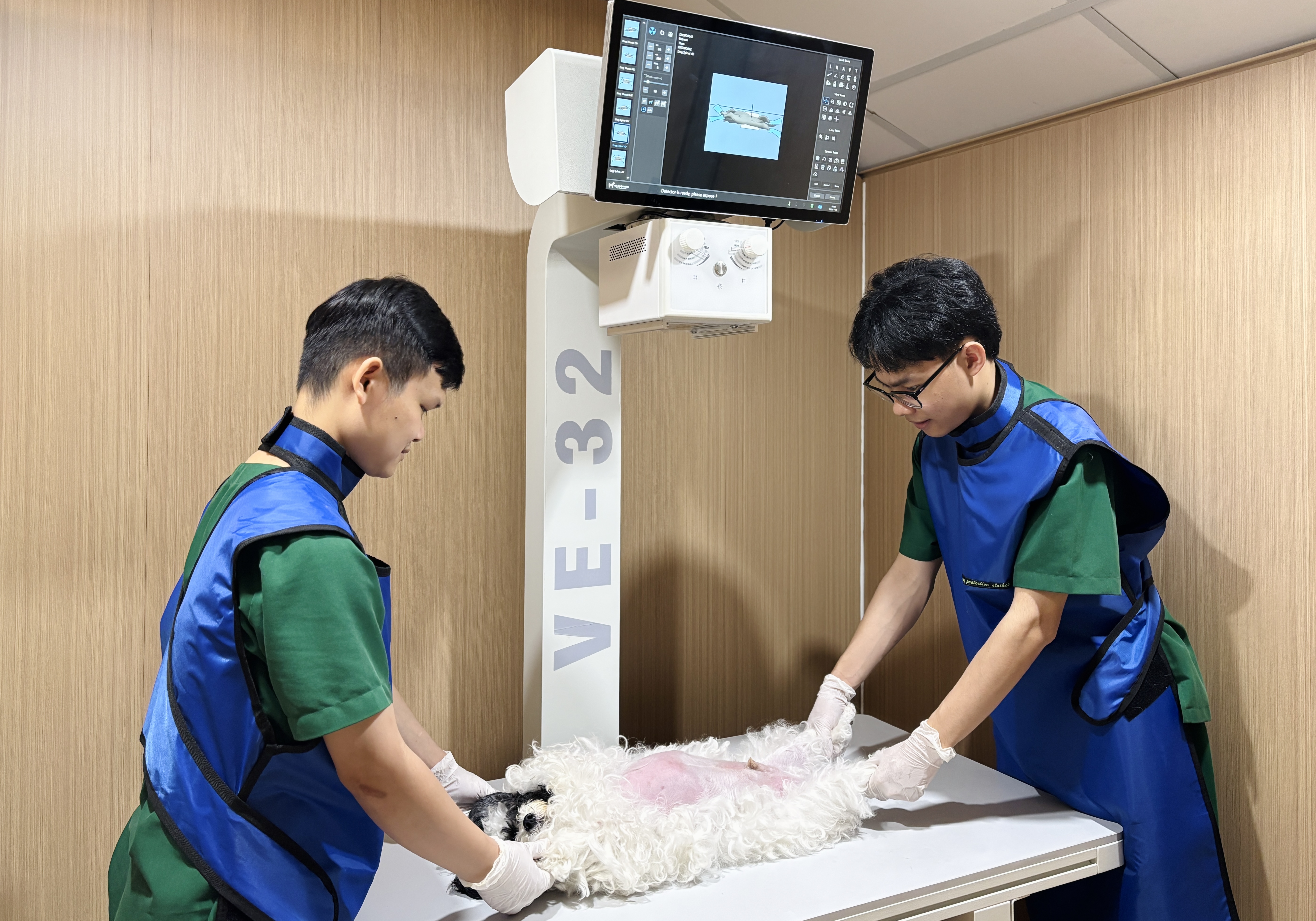 Thú cưng được cố định tư thế đúng kỹ thuật để đảm bảo hình ảnh rõ nét.